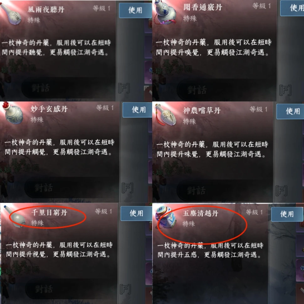 我們可以完成舞陽秘事成就 白拿時裝闌夜流波(女)/寒音落玉(男) 獲取方式相對來說比較簡單 無需通關副本就可以先穿上boss同款黑金配色的美衣 (๑´∀︎`๑) 女角時裝·闌夜流波 男角時裝·寒音落玉 接下來是為大家帶來的一篇跟跑攻略👇 一、前往磁州 864,1055 和施小雲對話,獲得【桃木劍】 二、 2.1 前往杭州1093,918 和薛真對話 2.2 杭州 1280,833 和藍實對話 2.3 杭州 1101,900和桂枝對話完成後,送上【下品止血散】(在樓上的天橋處,需要往上看) 2.4 前往汴京(848,934) 靠近六扇門捕快 觸發奇遇-紅袖曾在,完成奇遇獲得【紅萼繡樣】 ps:我在跑的過程中没有捕快NPC和遇到捕快NPC但不觸發奇遇這兩種情况都有遇到 目前的解决辦法就是需要把前面4條前置任務都做完,没觸發就切換角色/重登/換地圖線路/隔天再來,在這個點位附近亂逛,如果没出現奇遇就多試幾次。如果有五感藥可以使用一下,輔助增加觸發機率。(這個奇遇觸發挺隨機的,不清楚具體需要什麼感,下面標紅的可以試試喔) 三、前往杭州1095,942 和阮七對話 去二樓149,98 和鳧兒對話 獲得【青絲舞鞋】 四、前往雁門關308,752 和關小岳對話 獲得【鎏金鈴鐺】 五、前往舞陽城副本,分別向外城的老一、内城的老四、老五、老六出示對應的物品即可(貼近BOSS後會有一個出示選項,提交後BOSS觸發對話劇情) 如果覺得組隊通關副本和人機通關都有難度,也可以找已經通關的小夥伴幫你開一下門~ 這個成就的BOSS不需要打敗,只要普攻打他一下,靠近就有出示選項!! (如果沒有通關的幫忙開門,老五記得打死,不然沒法打老六~~)